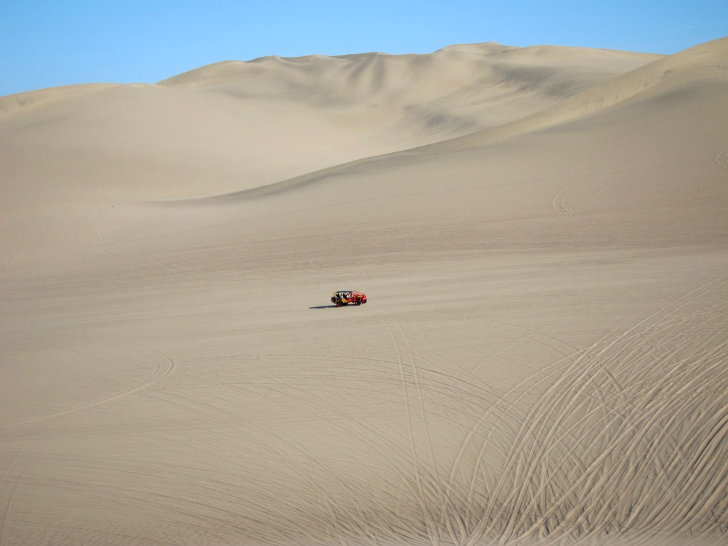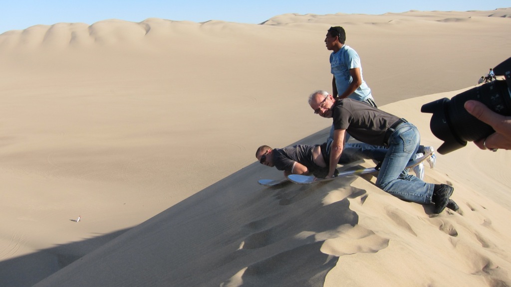 Vozimo se otvorenim prastarim buggijem po dinama koje su prije dva milijuna godina bile dno oceana. Puši se, brenči, trese. Misliš da će se raspasti dok svladava pješčane strmine, a onda vrištiš dok se strmoglavo spušta. Neki su se spuštali i na sandboardu. Nema kraja čuđenju. Pješčani nabori obrubljeni sjenama oblikuju baršunaste forme koje se izdužuju u nedogled. A onda se naglo zavinu u duboku sjenu rupe kojoj ne vidiš dna. Koliko ljepote može stvoriti priroda. Koliko smo te ljepote u stanju vidjeti?